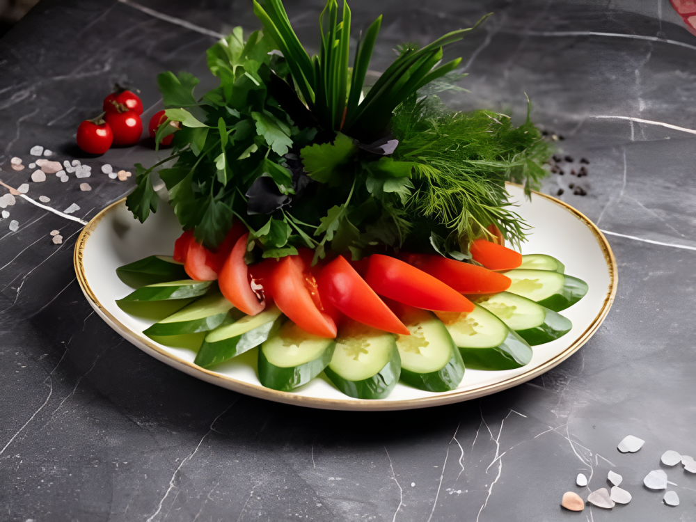 Огурцы, томаты, ассорти из зелени
