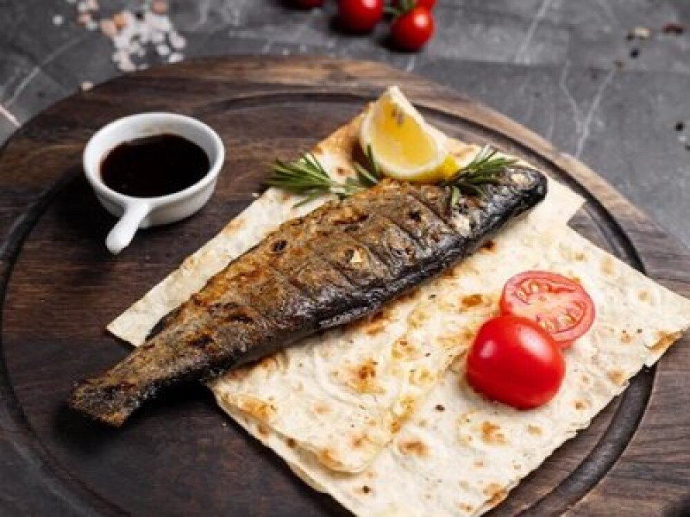 Рыба сибас, маринованная по авторскому рецепту. Блюдо готовится на углях