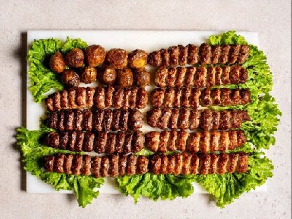 Люля-кебаб из курицы (800 г), люля-кебаб из говядины (400 г), люля-кебаб из свинины (400 г), люля-кебаб из баранины (400 г), картофель на мангале (500 г), лук (150 г), соус шашлычный (4 шт.) (200 г), лаваш армянский (2 шт.) (300г)