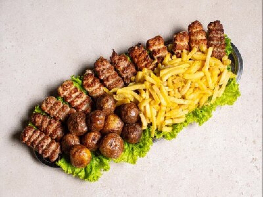 Люля-кебаб из курицы (600 г), из говядины (400 г), из свинины (400 г), картофель на мангале (500 г) лук (150 г), соус шашлычный (4 шт.) (200г), лаваш армянский (2 шт.) (300 г)